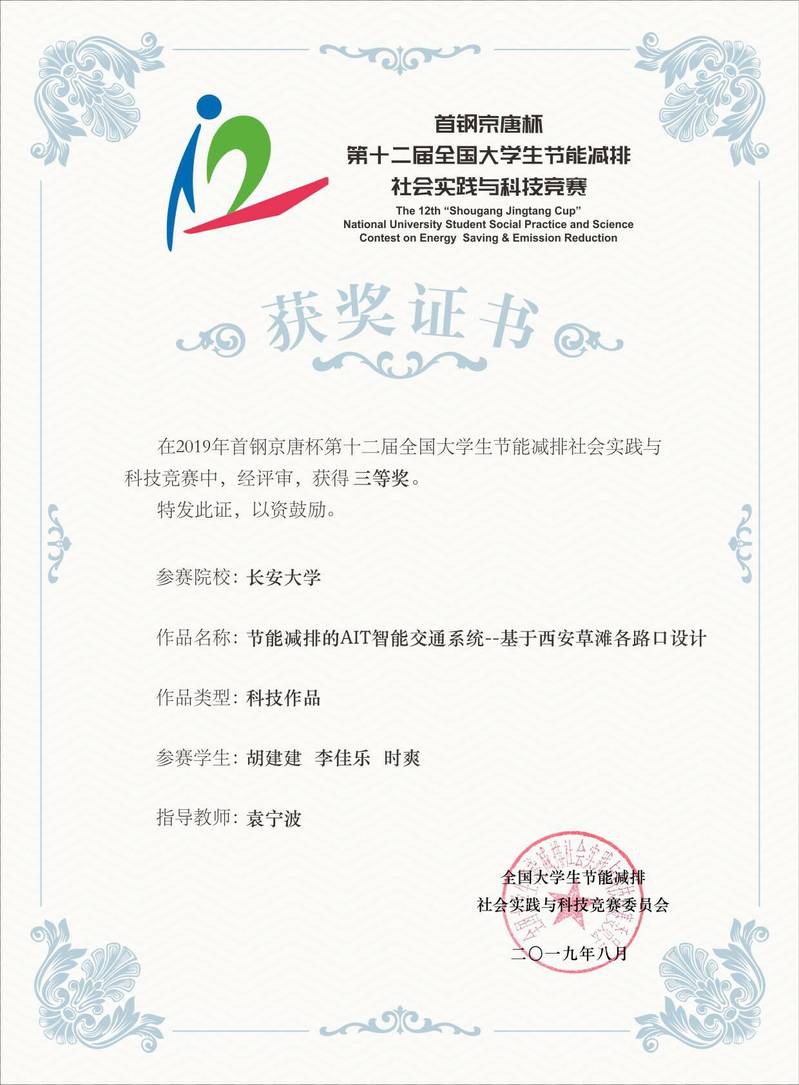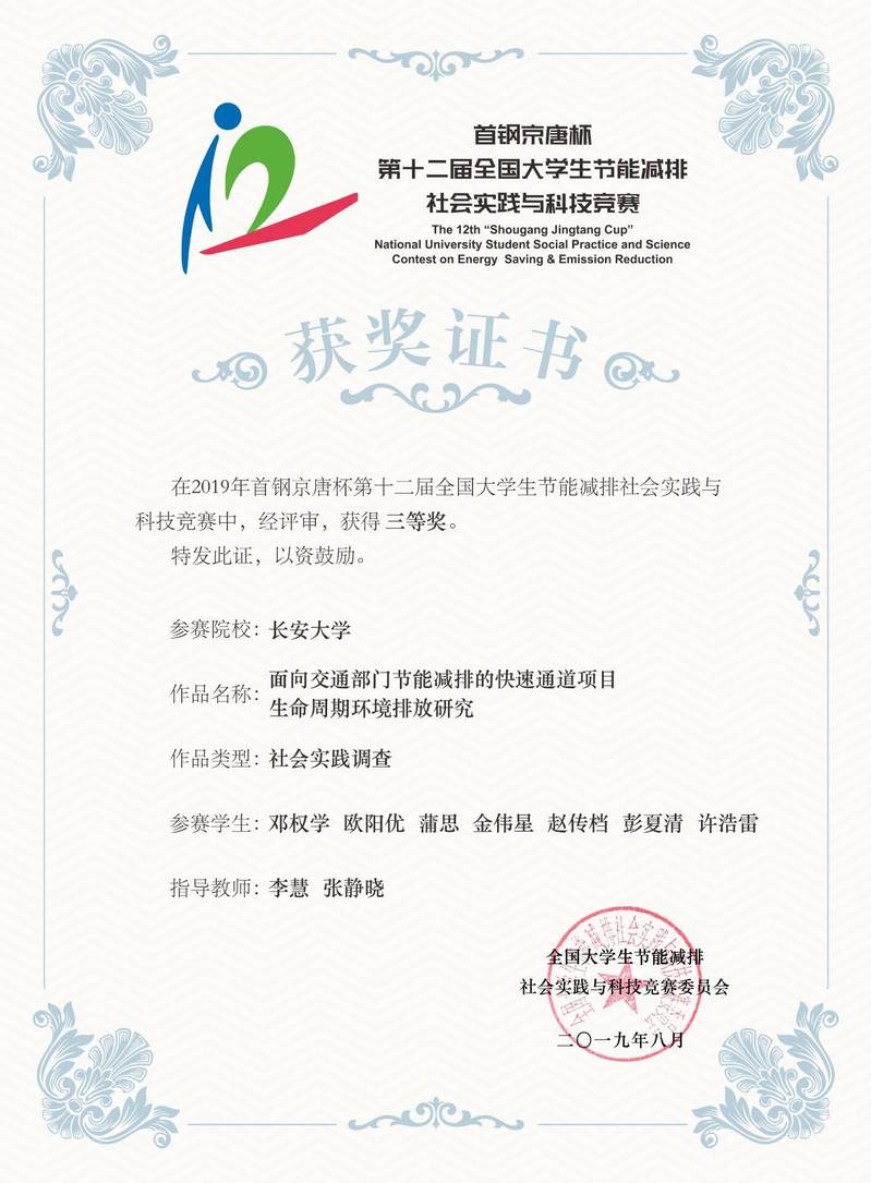 自2019年起,脱裤吧 获准承担该项竞赛校内组织工作。在第十二届(2019年)全国大学生节能减排社会实践与科技竞赛中,脱裤吧 获得国家级三等奖2项,二等奖1项,脱裤吧 荣获优秀组织奖;在第十三届(2020年)全国大学生节能减排社会实践与科技竞赛中,脱裤吧 获得二等奖1项、三等奖三项,其中,由脱裤吧 赵轩教授和邱兆文教授指导本科生完成的参赛作品“增程式重型商用车的再生制动系统与缓行器联合控制装置”获得三等奖。