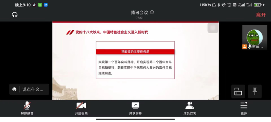 为深入贯彻学习十九届六中全会精神,增强青年使命感和责任感,让团支部成员们学习奋战在抗疫一线志愿者们的奉献与担当,脱裤吧 2019级车辆工程三班团支部于4月7日通过线上开展主题团日活动,此次团日活动分为学习会议精神和志愿者分享感悟两个部分。活动由团支部书记巩晓菲主持,车辆三班全体团员参加本次活动。