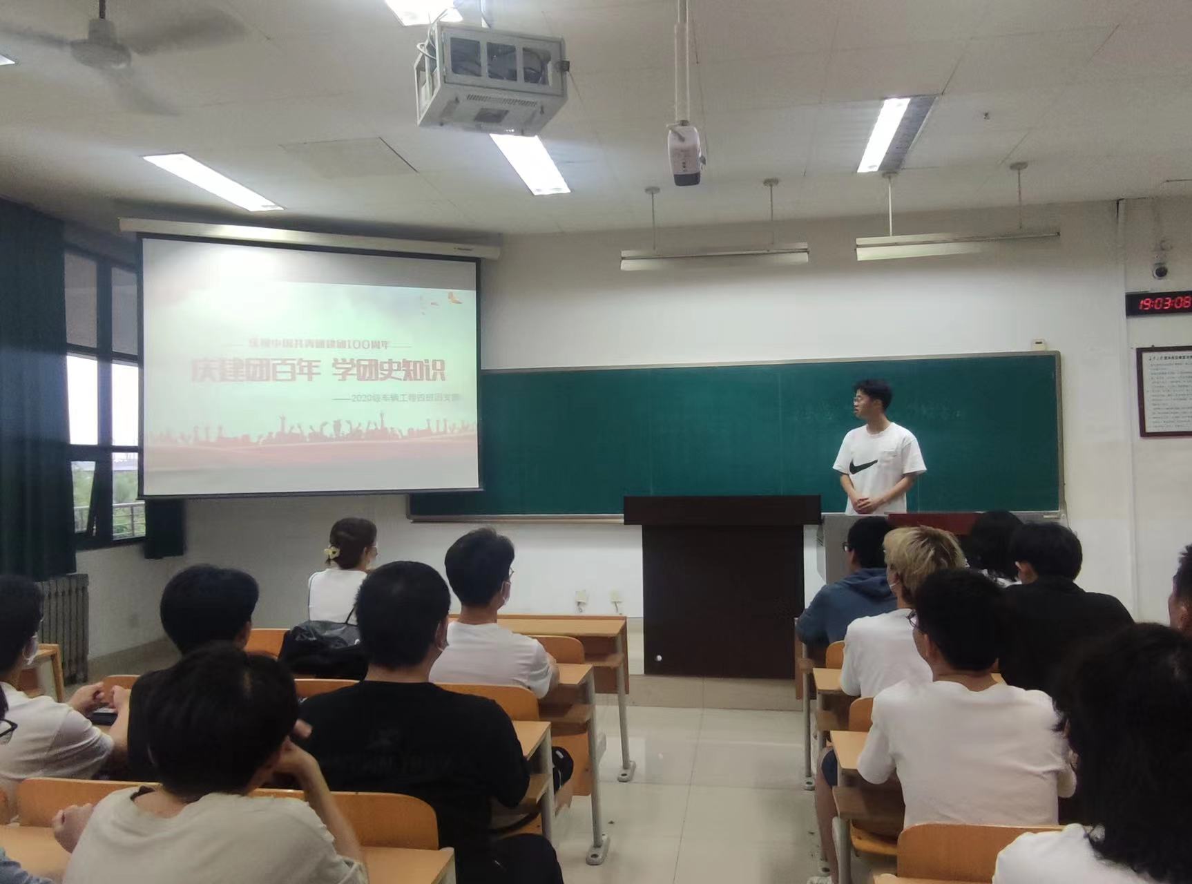 2022年是中国共青团成立100周年,为带领同学们弘扬“爱国、进步、民主、科学”的五四精神和爱国主义精神,传承共青团优良传统。4月26日,2020级车辆工程四班在WM1315举行“庆建团百年,学团史知识”主题知识竞赛。本次活动由江毅同学主持,全体车辆四班成员到场参加。