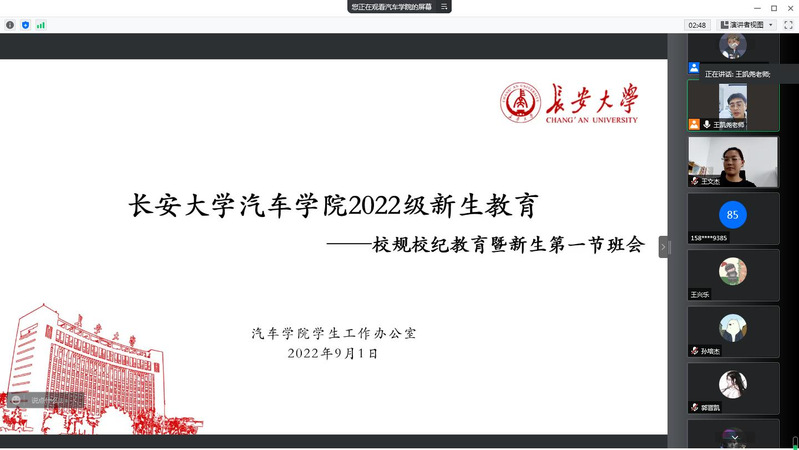 会上,王凯尧首先对进入脱裤吧 的各位新生表示热烈的欢迎,随后,他结合同学们线上反馈的相关疑问及安全风险问题进行了安全稳定教育,并结合实例对新生开展了防诈骗宣传,希望同学们能进一步提高警惕。同时,他还寄语2022级新生,大学是人生中很宝贵的一段青春时光,希望同学们能够好好学习、不负韶华,树立责任意识,培植家国情怀,在大学期间不断锻炼、提升自己。之后,王文杰就开学后学生的日常教育管理及学校的校规校纪做出了详细的讲解,她希望同学们要自律、自控、自主、自觉,端正态度,提高认识,对大学的学习生活要有初步认知与心理准备。最后她强调了开学后健康打卡、晨午检打卡、外出报备、日常请假、晚点名制度等内容要求。