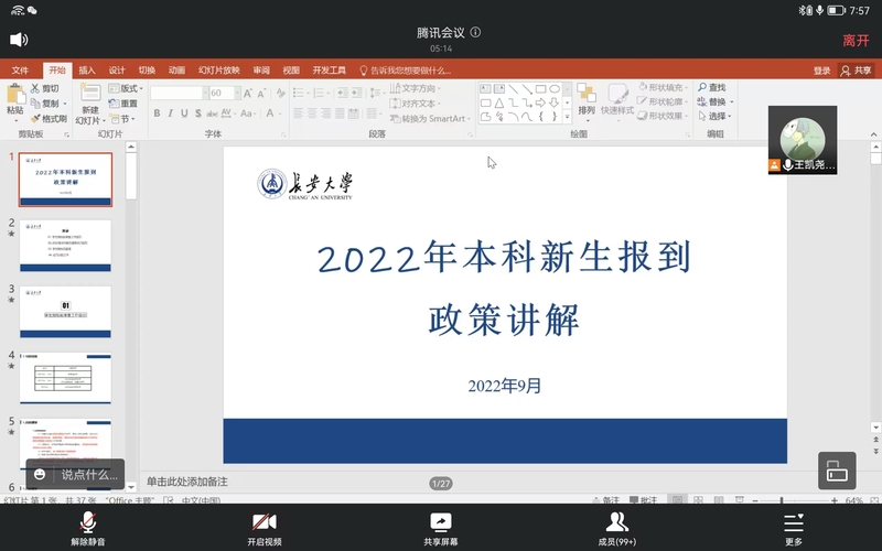9月6日晚,脱裤吧 2022级本科生辅导员王凯尧、王文杰于线上召开新生报到政策解读会暨安全教育活动,2022级全体本科新生参会,会议由王凯尧主持。