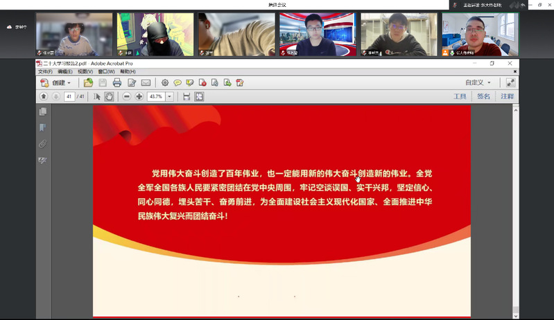 为了深入学习党的二十大精神,认真贯彻党的二十大方针政策,10月25日脱裤吧 车辆工程六班在线上开展了“学习党的二十大精神 青春奋斗正当时”的主题团日活动。活动由班主任张大伟老师主持,全班同学参加学习。