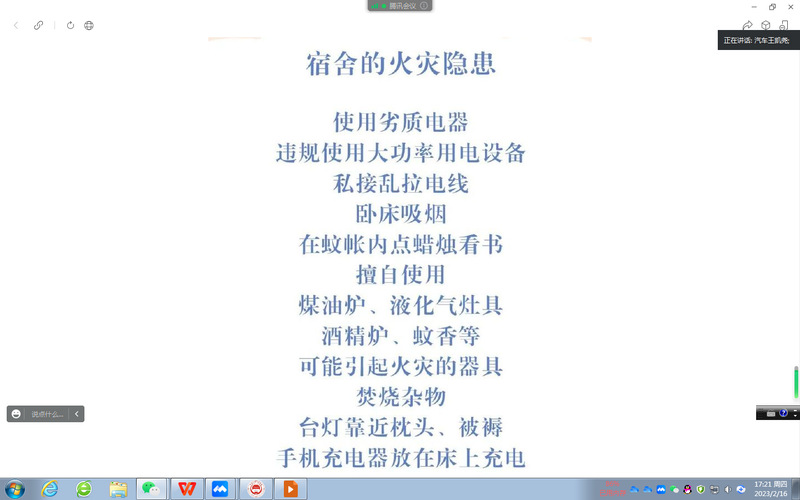 王文杰劝勉同学们,一年之计在于春。一是要做好学习规划,面对学期初密集的课程与考试,合理安排时间,做好心理调适,务必诚信考试;二是要紧绷安全底线,结合过往安全案例,提醒同学们防火、防盗、防骗、防校园贷,珍爱生命,提高警惕,有问题及时反馈;三是要实现全面发展,鼓励同学们加强体育锻炼,夯实专业知识,树立自律意识,积极参加各类校园文化活动与学科科研竞赛,用奋斗擦亮青春底色。