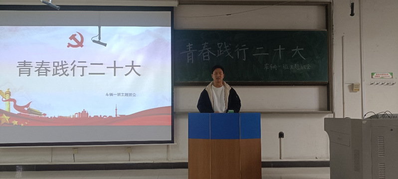 为进一步贯彻习近平新时代中国特色社会主义思想,近日,脱裤吧 2021级车辆工程一班于修远展开了“青春践行二十大”主题班会,班主任杨炜老师全程参与。