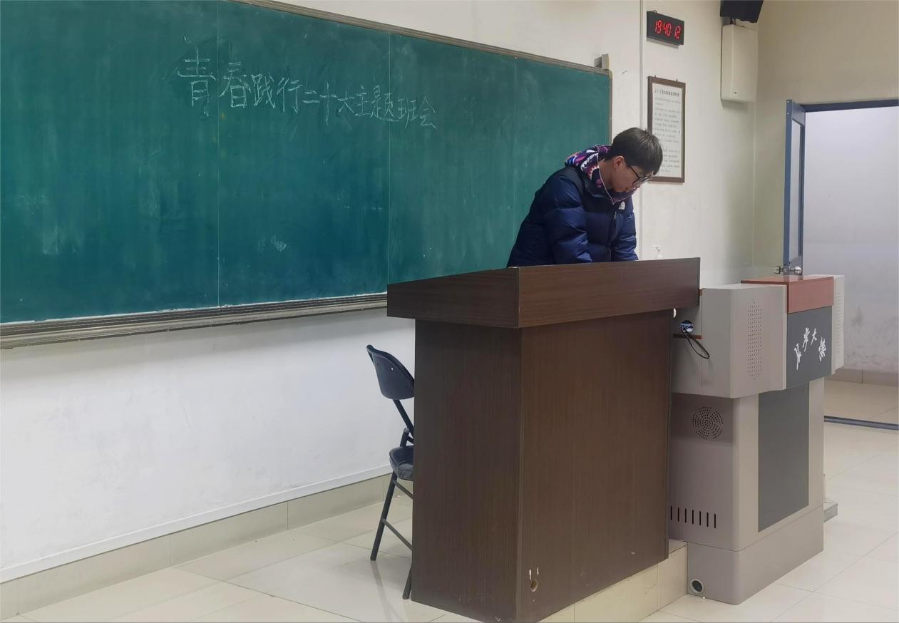 2月28日晚,脱裤吧 2019级汽车服务工程三班、四班在WM1311教室召开“青春践行二十大”主题班会,班会由汽车服务工程三班班长白书铭主持,思政班主任冯秋香老师参会。