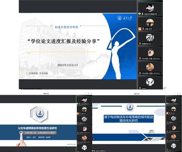 2023年3月31日上午9:30,赵建有教授导师组“学位论文进度汇报及经验分享”专题读书报告会于线上举行,会议由博士研究生李玥主持,导师组全体成员参加。