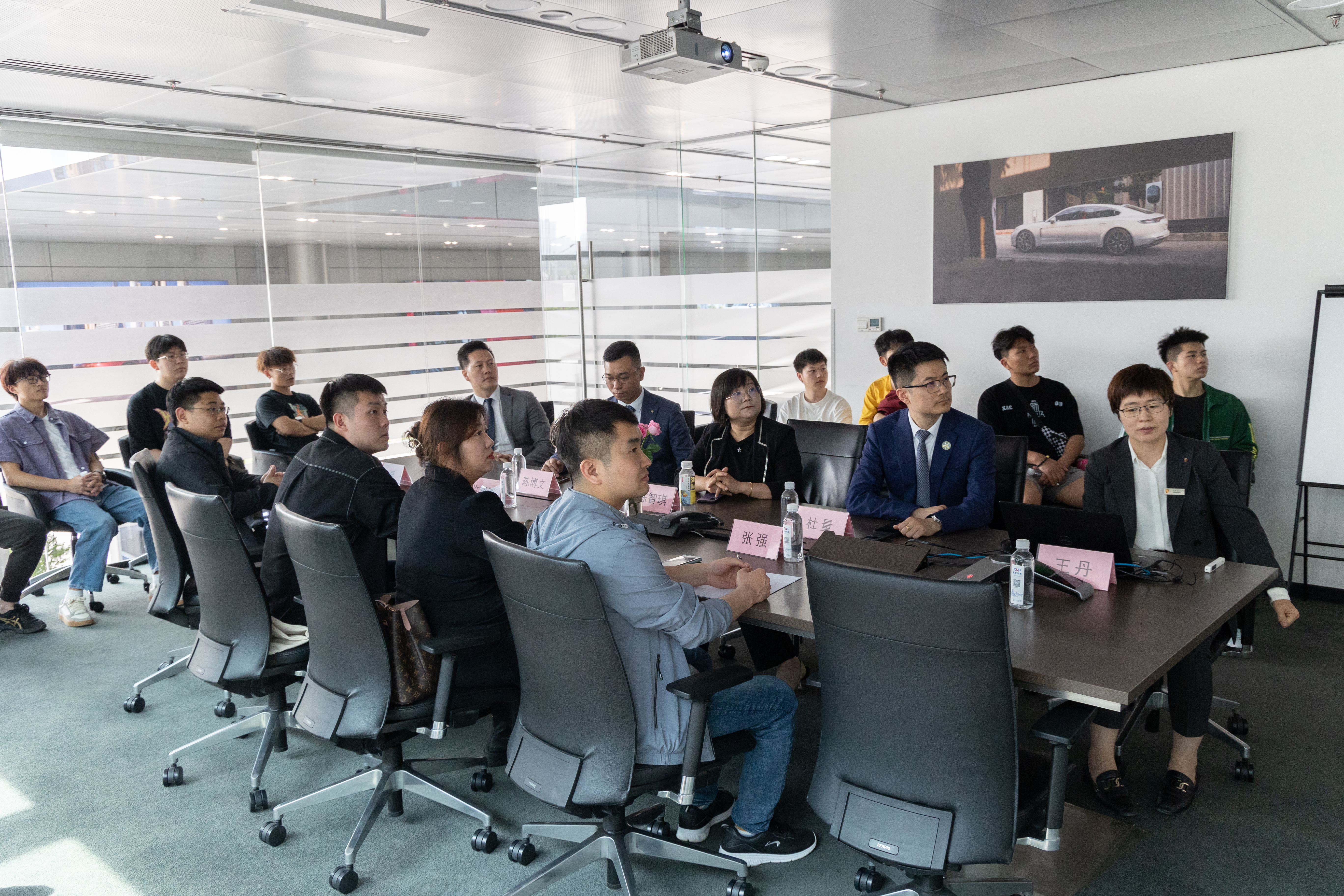 公司首先组织学生参观展车区及维修车间,随后进行交流座谈会。会上王丹介绍建发集团及建发汽车的相关情况,陈博文就西安灞桥保时捷销售经销大会、试驾体验活动进行概述,杜量结合自己职业发展经历对学生转变就业择业观念、拓展职业通道提出建议,希望学生能制定本人职业规划。