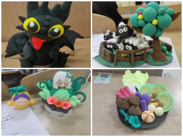 本次活动融合了心理体验和手工创作,较难的创作设计与制作过程、较长的制作耗时等都没有降低同学们的参与热情,活动现场大家互帮互助、交流协作,活动氛围和谐融洽,给予同学们充分的个人发挥空间,将自身想法投射、浓缩至泥塑作品中。