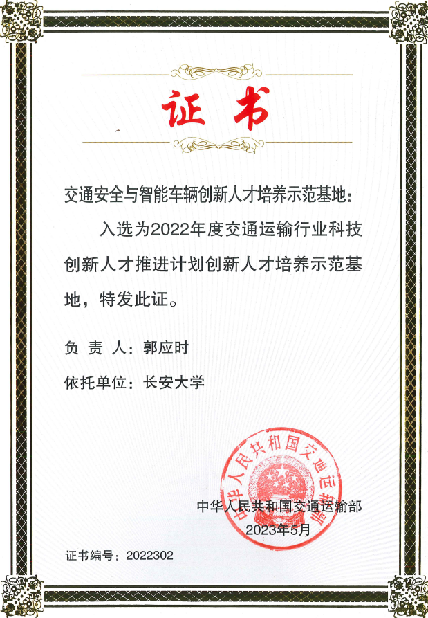 近日,在交通运输部公布的2022年度交通运输行业科技创新人才推进计划创新人才培养示范基地评选结果中,脱裤吧 交通安全与智能车辆创新人才培养基地成功获批交通运输行业创新人才培养示范基地。