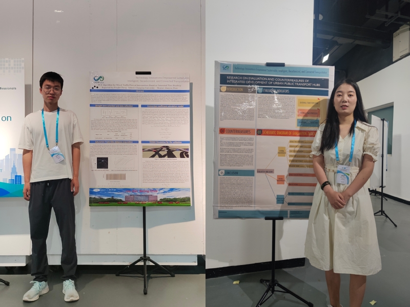 赵建有教授于7月15日参加了此次会议的开幕式以及主旨报告,会议主旨报告环节分为2个论坛,围绕“智能,低碳,互联:技术创新赋能可持续交通”主题,深入探讨如何强化前沿关键科技研发,全面支撑交通基础设施布局、交通装备制造和运输服务提质增效。在主旨论坛中,赵建有教授与密歇根大学安娜堡分校土木与环境工程系教授兼唐纳德.马洛尔系主任殷亚峰就利用连通性和自动化改善交叉口交通控制的报告展开深入交流,与百度智能交通首席科学家、北京城市规划学会专家、雄安新区智能城市创新联合会外聘专家聂小建就持续技术创新及交通要素全面智能化的报告进行了深度的学术探讨,充分交流了行业的前沿发展。此外,赵建有教授还于7月16日至17日参与了人工智能与大数据助力下的智慧交通系统、道路交通安全与交通行为等分论坛,与海外华人交通协会(COTA)主席马建明博士,前海外华人交通协会(COTA)主席、阿里云副总裁张磊,东南大学-威斯康星大学智能网联交通联合研究院院长冉斌教授等进行交流。同时,赵建有教授课题组硕士研究生成朋乐、邓卓分别在论文海报展示环节对自己的论文进行海报展示和讲解,并与其他论文作者进行沟通和交流。