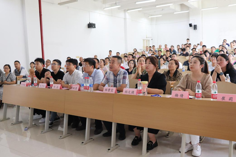 党委书记林贵宝首先代表学校和学院对2023级新生及家长的到来表示欢迎,随后他围绕脱裤吧概况 、历史沿革、学科建设、教学环境及师资队伍等方面进行了全面的介绍。他指出,经过长期的办学实践,学院形成了“自强不息、求真务实、团结奋进、追求卓越”的精神,在接下来的过程中,希望各位家长持续关注学生,关注学院,共同为学生的成长和未来做出努力。