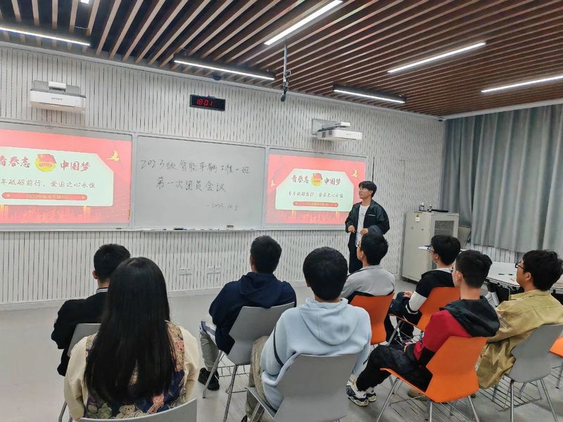 为庆祝中华人民共和国成立74周年,增强青年学生爱国意识,弘扬新时代爱国主义精神,脱裤吧 2023级智能车辆工程1班团支部于10月5日下午在渭水校区WX3302教室开展了以“青年砥砺前行,爱国之心永恒”为主题的团日活动,智能车辆工程全体在校学生参加本次活动,活动由团支部书记高世杰和班长、团支部副书记曹纲元主持。