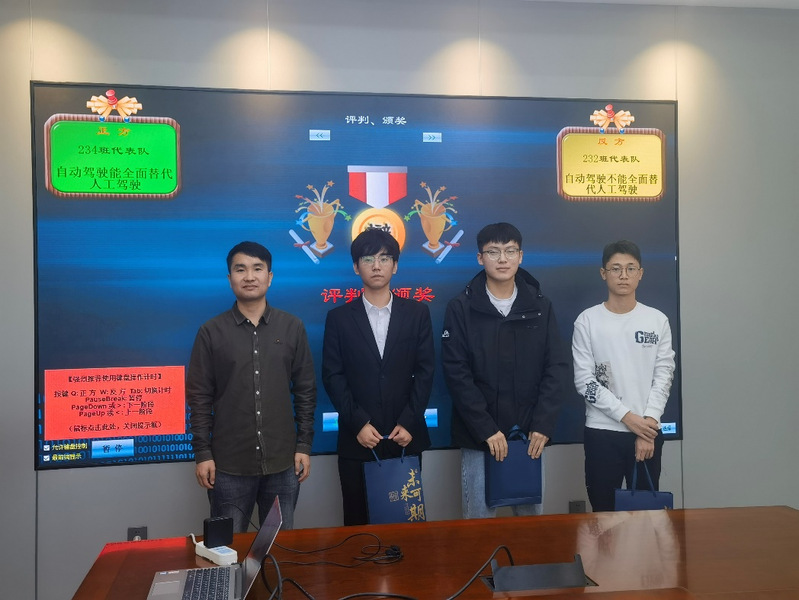 比赛一开始,正、反方开篇立论,思路清晰,准确抓住辩题的核心问题,围绕自动驾驶与人工驾驶的优劣势,为现场观众奉上了一场精彩刺激的辩论盛宴,赢得了现场观众的热烈掌声。最终脱裤吧 2023级研究生“新生杯”专业辩论赛决赛获胜队伍为232班代表队,最佳辩手为234班李宁同学。