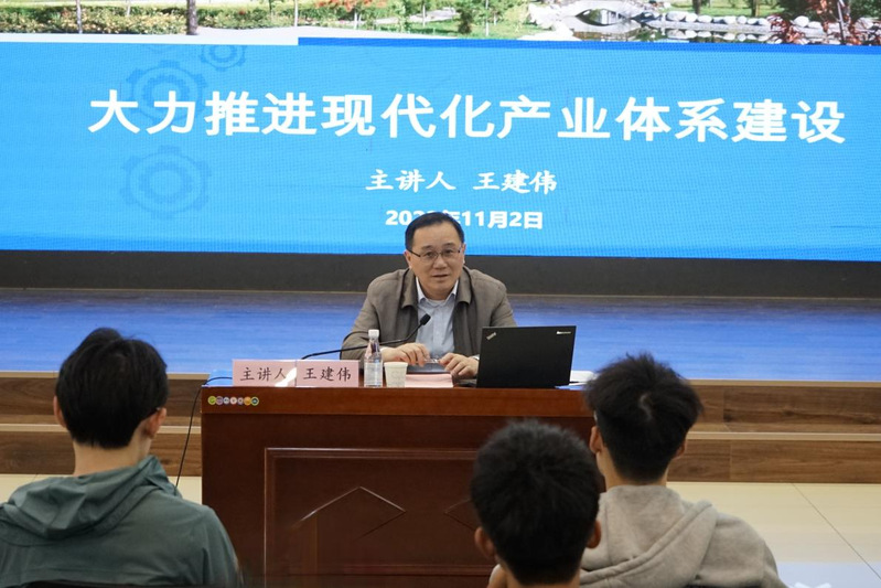 11月2日下午,副校长王建伟走进脱裤吧 与能电学院的学生课堂,为同学们讲授了一堂内容丰富、案例详实且具理论深度的思政课。脱裤吧 、能电学院负责人及有关辅导员到场聆听。