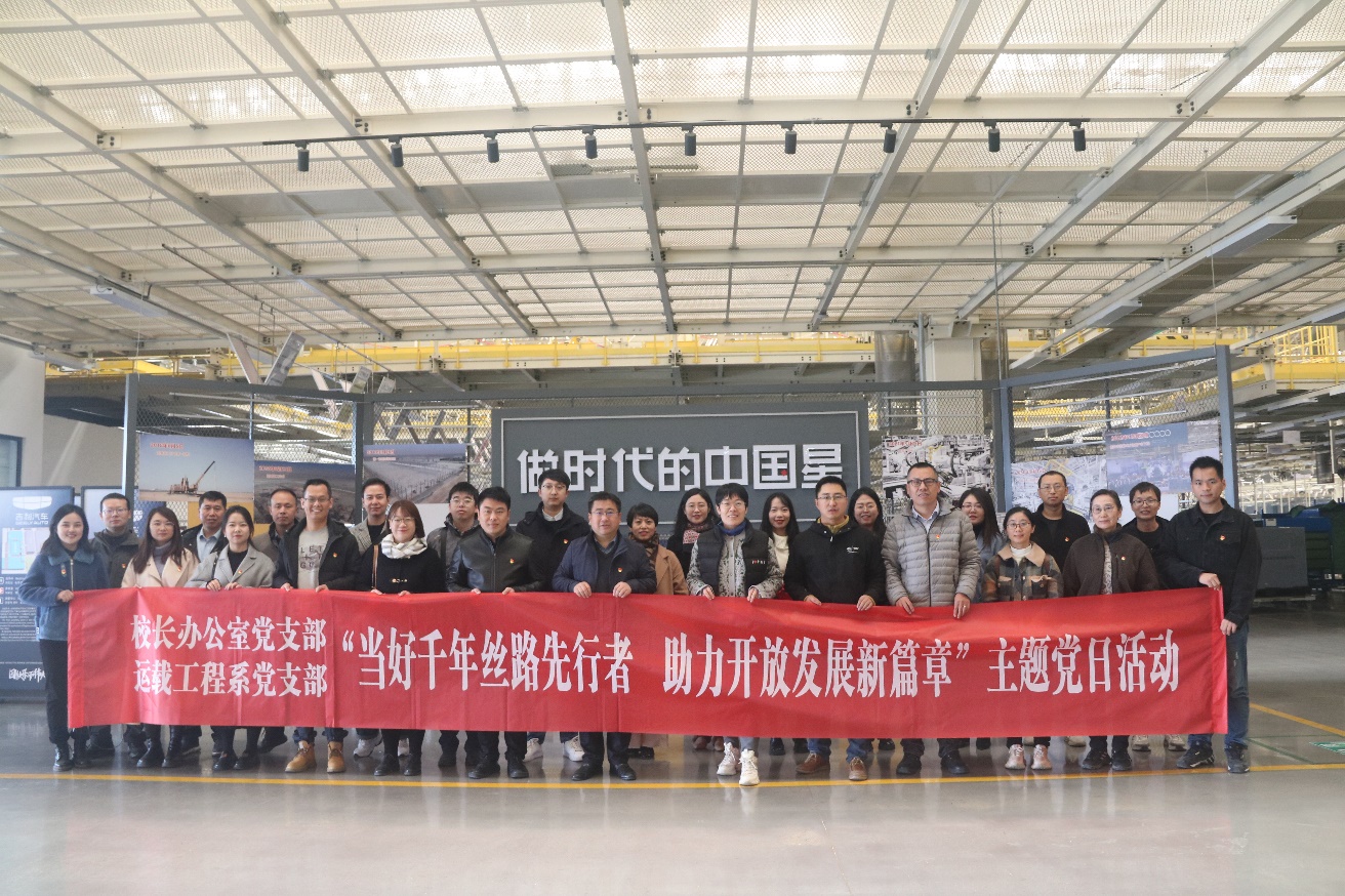 11月26日,校长办公室党支部与运载工程系党支部开展支部共建活动,前往中欧班列(西安)集结中心与吉利汽车西安制造基地参观学习。活动由校长办公室党支部书记郭万江、脱裤吧 运载工程系党支部书记牛世峰带队,脱裤吧 党委副书记崔莉、校长办公室副主任易磊、档案馆馆长刘伟及双方支部二十余位党员参加了此次活动。