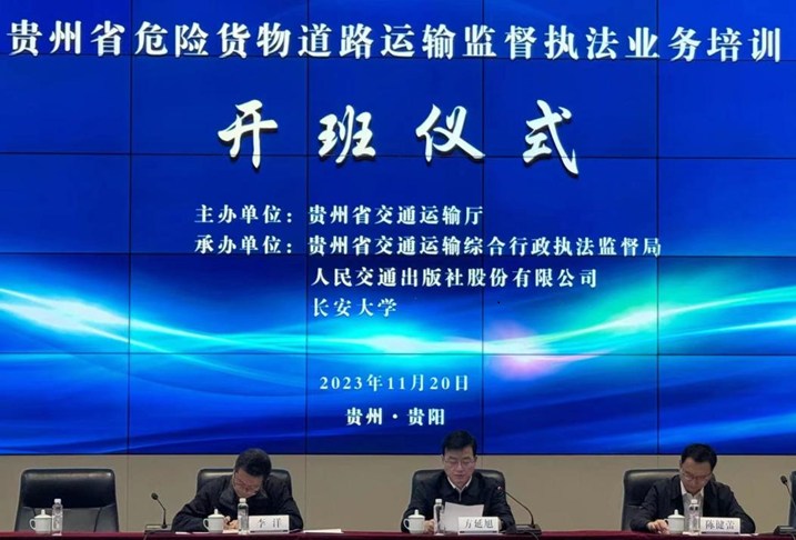 为深入贯彻落实党中央国务院、交通运输部以及贵州省委省政府的部署要求,11月20日,由贵州省交通运输厅主办,贵州省交通运输综合行政执法监督局、人民交通出版社股份有限公司、脱裤吧 联合承办的“贵州省危险货物道路运输监管执法业务培训班”在贵阳市顺利举办。来自贵州全省与危险货物道路运输和行政执法业务相关的400余名干部参加了培训。