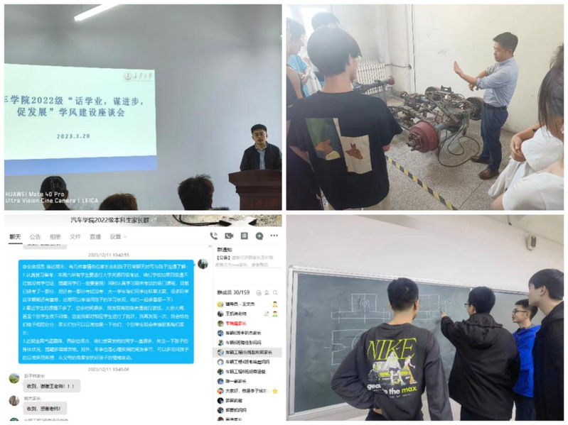 注重协同育人,有的放矢抓学风。构建“辅导员—班主任—学生家长—班级同学”协同育人模式,统筹资源,建立健全“三全育人”长效机制。辅导员定期深入学生课堂,走访学生宿舍,在年级建立晚自习制度,全面督促学生的学习;班主任通过主题班会、专业认知、实习实践、科创指导等形式,帮助学生将理论与实践相结合;在年级建立家长群,定期与学生家长进行沟通交流,家校协同提升学生的学习成绩;在各班级建立学业帮扶小组,每周一次开展集中帮扶,同时对学业困难学生进行“一对一”结对帮扶,不断激发学生的学习主动性。