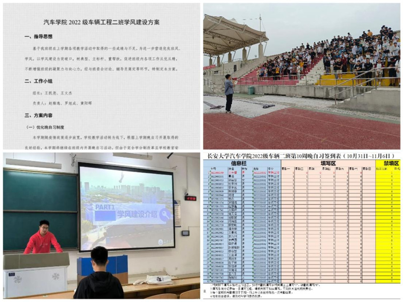 突出科创引领,提质增效促学风。结合“新工科”人才培养要求,鼓励学生积极参加各级、各类科创竞赛与文化活动,增强学习动力。要求各班级以班级为单位培育科创小组,主动申报中央高校学生创新创业子计划、“互联网+”大赛、大学生创新创业训练项目等;鼓励跨专业、跨年级组建科创团队,全力参加全国大学生方程式大赛、智能汽车大赛、全国物流大赛等学科专业竞赛,实现全面发展;支持学有所长的同学积极参加全国大学生数学竞赛、英语竞赛、数学建模大赛等学科竞赛,为学风建设赋能增效。