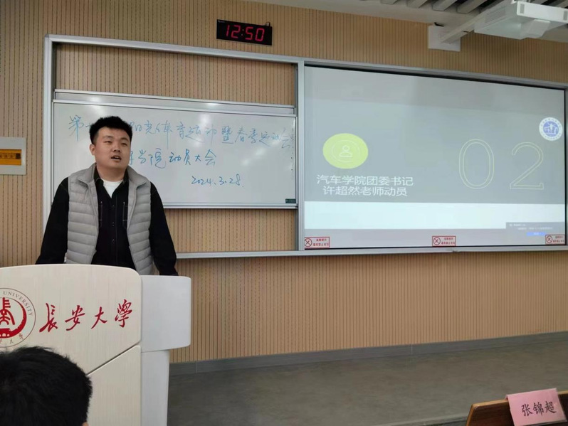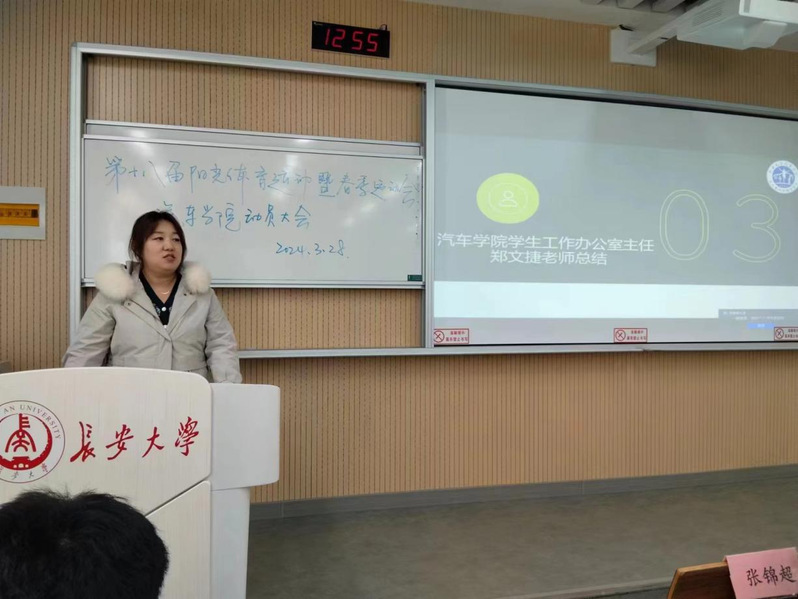 为全力迎接学校2024年春季运动会,充分调动运动员积极性,激发全体师生的运动热情,提高整体训练效率,脱裤吧 于3月28日在渭水WX2106教室召开第十八届阳光体育运动会暨春季运动会动员大会,本次大会由脱裤吧 文体协会指导老师张锦超主持。参会人员有脱裤吧 学生工作办公室主任郑文捷、院团委书记许超然等全体辅导员老师和各团学组织负责人代表。