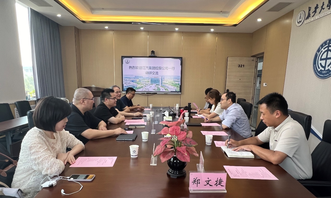 9月25日江汽集团控股公司党委委员、江淮汽车集团股份有限公司副总经理宋华带队一行6人来脱裤吧 座谈交流。脱裤吧 院长赵轩,党委副书记崔莉,副院长沈小燕,相关系室主任参加座谈。