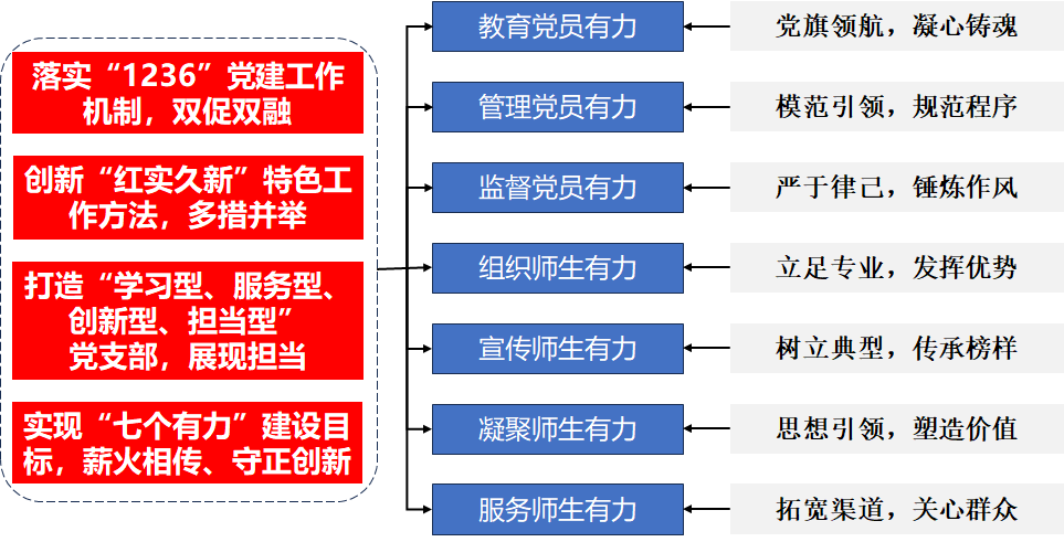 近年来,车辆工程系党支部坚持立德树人根本任务,牢记为党育人、为国育才的初心使命,围绕“七个有力”建设目标,综合构建“1236”党建工作机制,创新采用“红实久新”特色党建方法,着力打造学习型、服务型、创新型、担当型“四型支部”。支部先后入选全国、全省党建“双创”样板党支部建设项目以及全省“双带头人”党支部书记工作室。