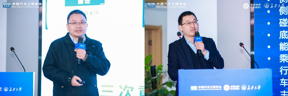 中国汽研指数体系研究专家刘煜和唐宇、车辆工程系朱国华副教授依次分享了AC-HUMs中国体征男性系列人体数字有限元模型、汽车智能安全测评技术的创新与实践、混杂纤维复合材料车身构件“材料-结构”一体化设计等前沿研究成果。