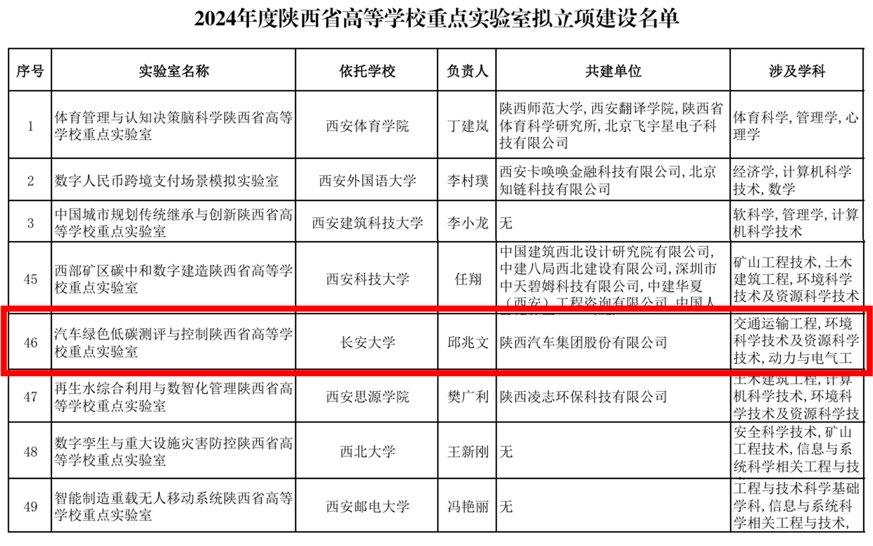 近日,陕西省教育厅公布了2024年度全省高等学校重点实验室立项建设名单,脱裤吧 邱兆文教授牵头申报的“汽车绿色低碳测评与控制陕西省高等学校重点实验室”成功获批立项建设。