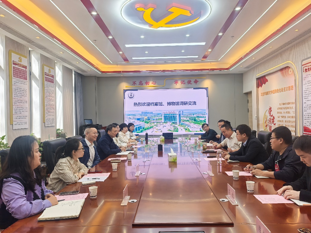 4月14日上午,校档案馆、博物馆馆长李加武,党支部书记、副馆长张雷,副馆长藏萌带队来脱裤吧 开展调研交流,学院党委书记林贵宝、副院长陈轶嵩、相关系室主任参加会议。