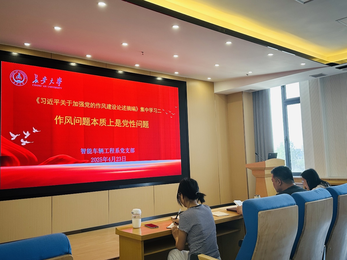 4月23日,智能车辆工程系党支部组织全体党员开展集中学习,深入学习《习近平关于加强党的作风建设论述摘编》第二部分“作风问题实质上是党性问题”。本次学习由支部书记张硕同志领学,其他党员同志积极参与讨论。
