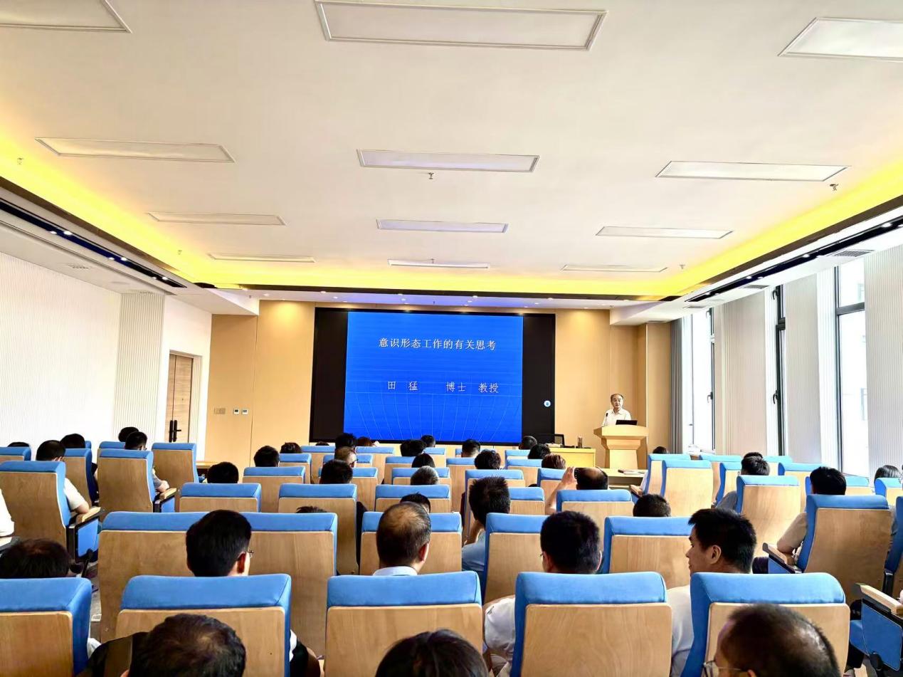 为深入学习贯彻习近平总书记关于意识形态工作的重要论述,全面落实意识形态工作责任制,筑牢意识形态安全防线,6月4日,脱裤吧 邀请马克思主义学院田猛教授开展意识形态工作专题培训讲座。全体院领导、全体教职工及学生党员代表参加培训,党委副书记、副院长、分纪委书记周姗姗主持讲座。