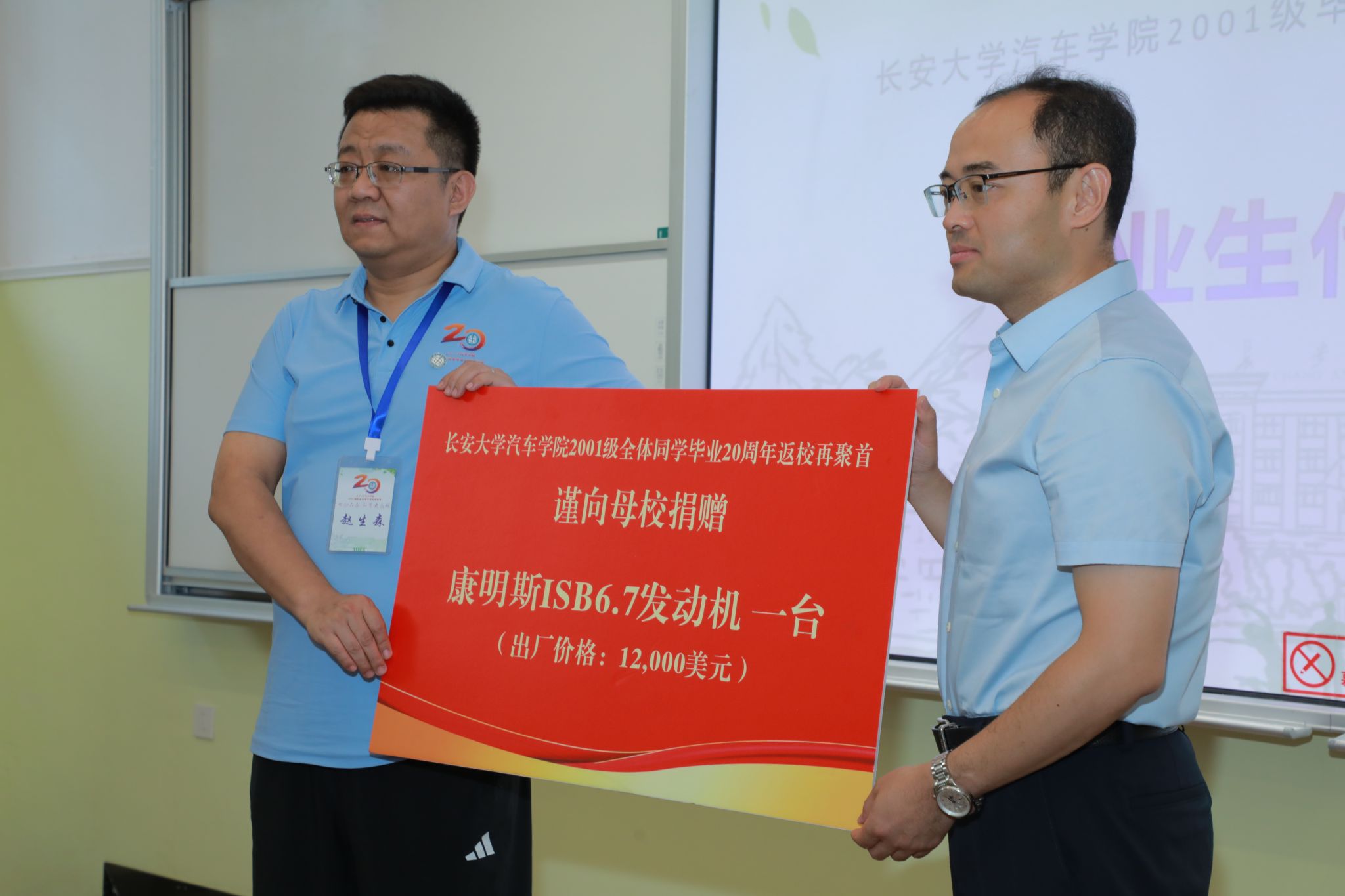 脱裤吧 2001级校友代表向学校捐赠康明斯发动机一台,承载全体学子对母校的深厚情谊;同时向现场教师代表献上鲜花,以此表达对恩师谆谆教诲的由衷感激。