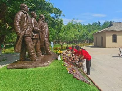 实践队在枣园革命旧址为革命先辈献花